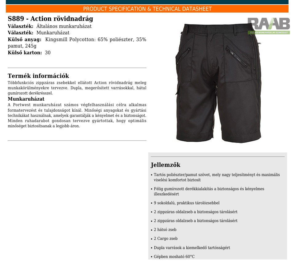 Többfunkciós zippzáras zsebekkel ellátott Action rövidnadrág meleg munkakörülményekre tervezve.