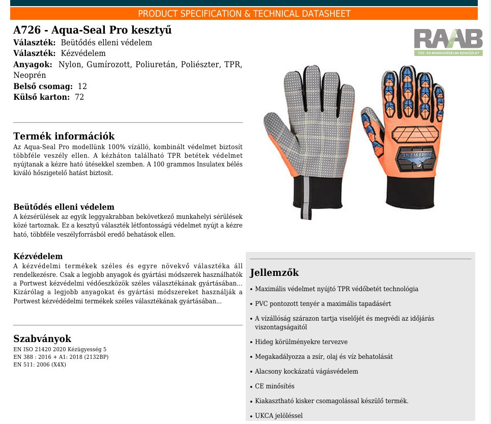 A kézháton található TPR betétek védelmet nyújtanak a kézre ható ütésekkel szemben.