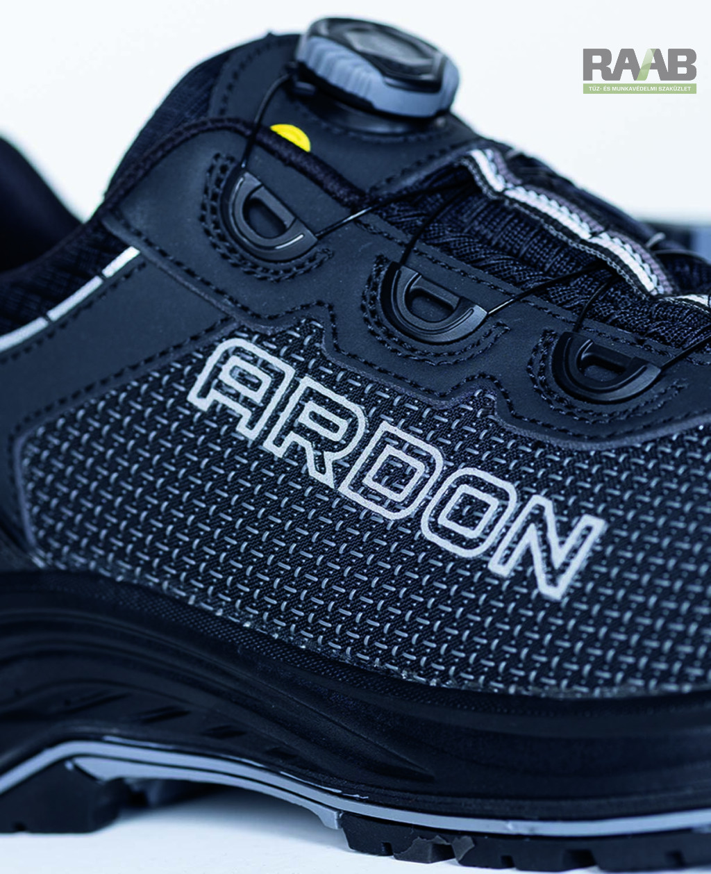 A cipő antisztatikus (ESD szint). A felsőrész gyors záródással a hagyományos fűzés