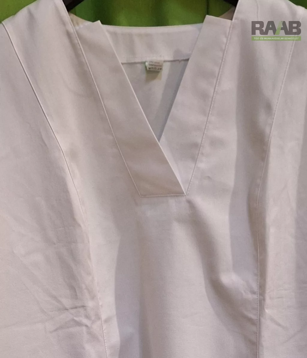 V- alakú nyakrésszel díszített munkaköpeny.