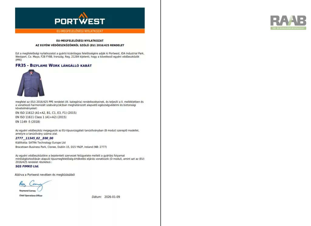Bizflame Pro kabát modellünk kimagasló komfortot és védelmet biztosít.