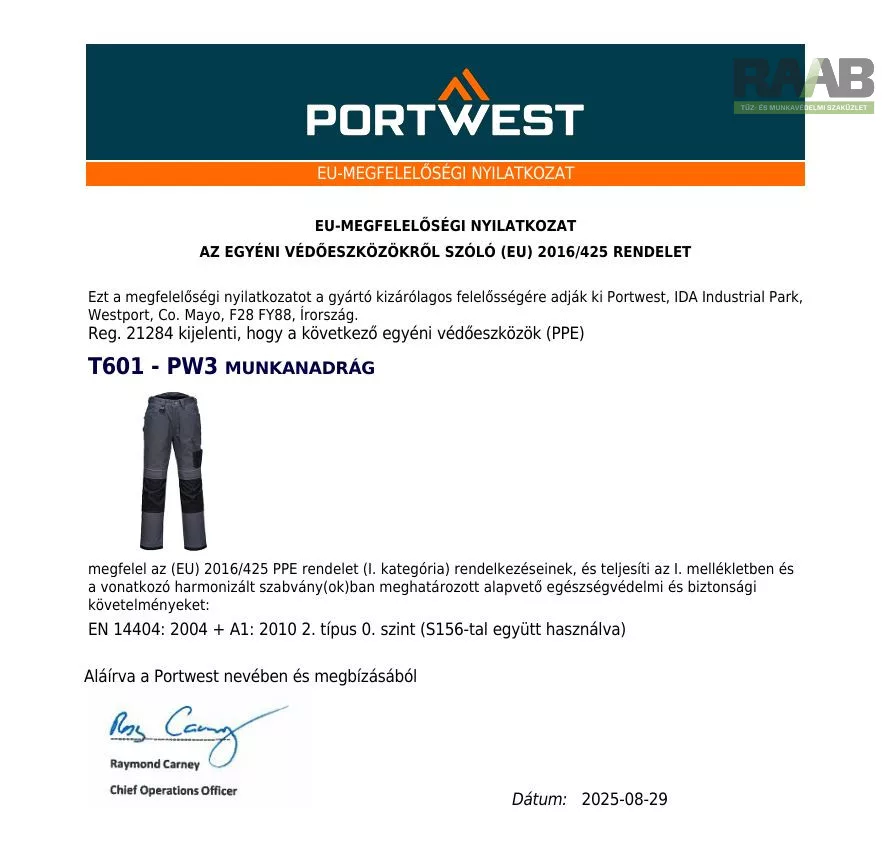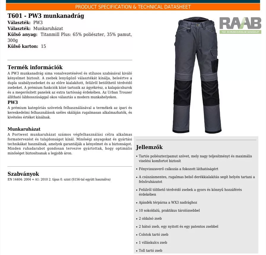 A PW3 munkanadrág sima vonalvezetésével és stílusos szabásával kiváló kényelmet biztosít.