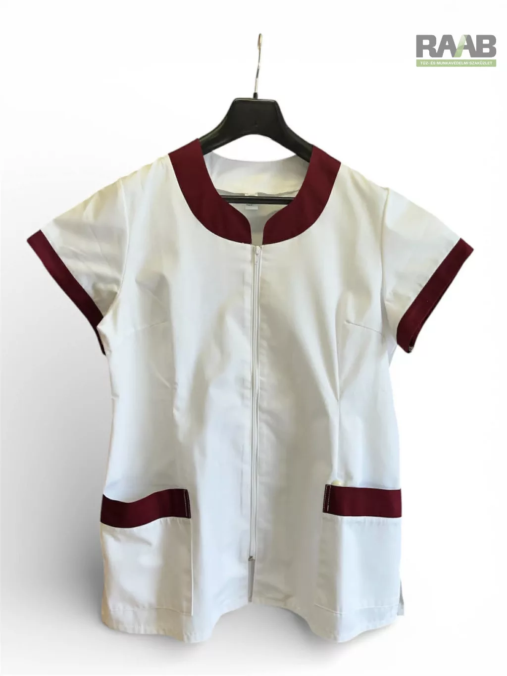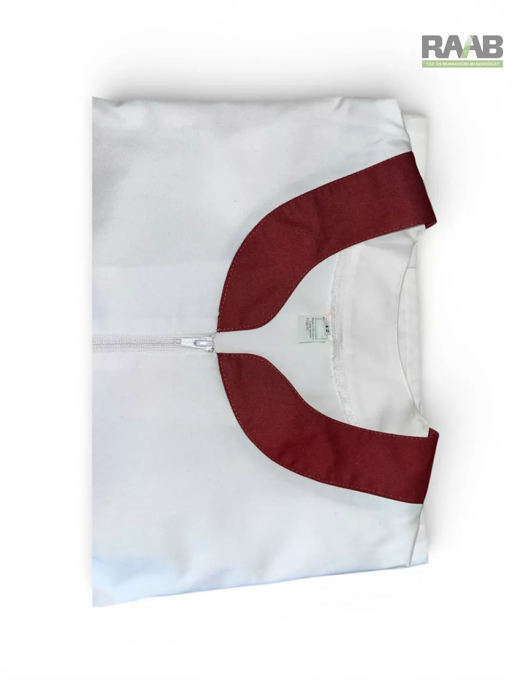 42-es méretű Dóra fehér köpeny cippzáras, bordó szegéllyel