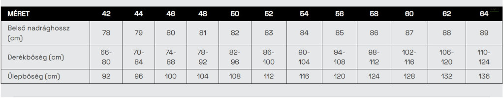 Továbbfejlesztett szabás tágasabb combrésszel a maximális kényelem érdekében