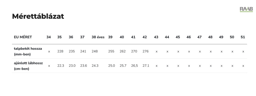 Súly: 513 g (fél pár 42-es méretű cipőre vonatkozik).