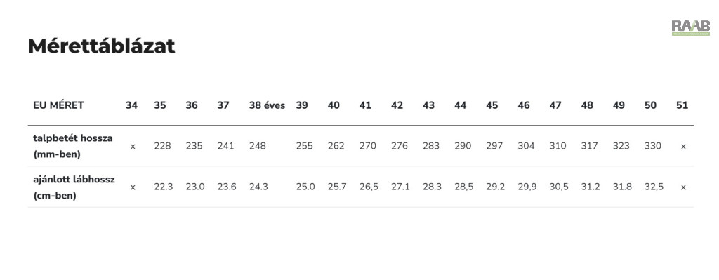 Súly: 513 g (fél pár 42-es méretű cipőre vonatkozik).