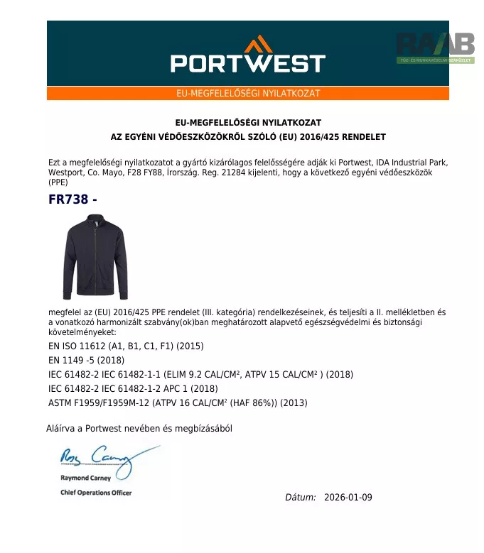 Antisztatikus, hő és lángálló, minőségi munkavédelmi polár pulóver.
