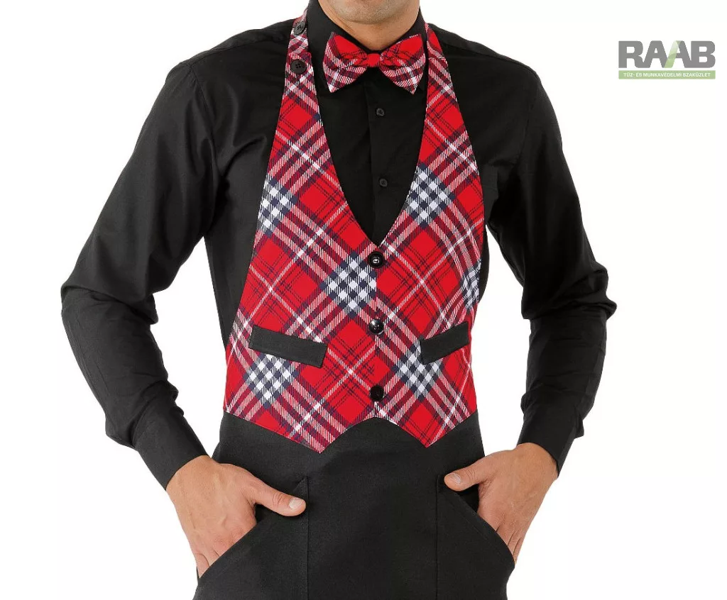 Fekete Garcon kötény, piros skót kockás felsőrésszel