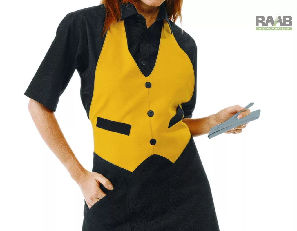 Fekete Garcon kötény, sárga felsőrésszel