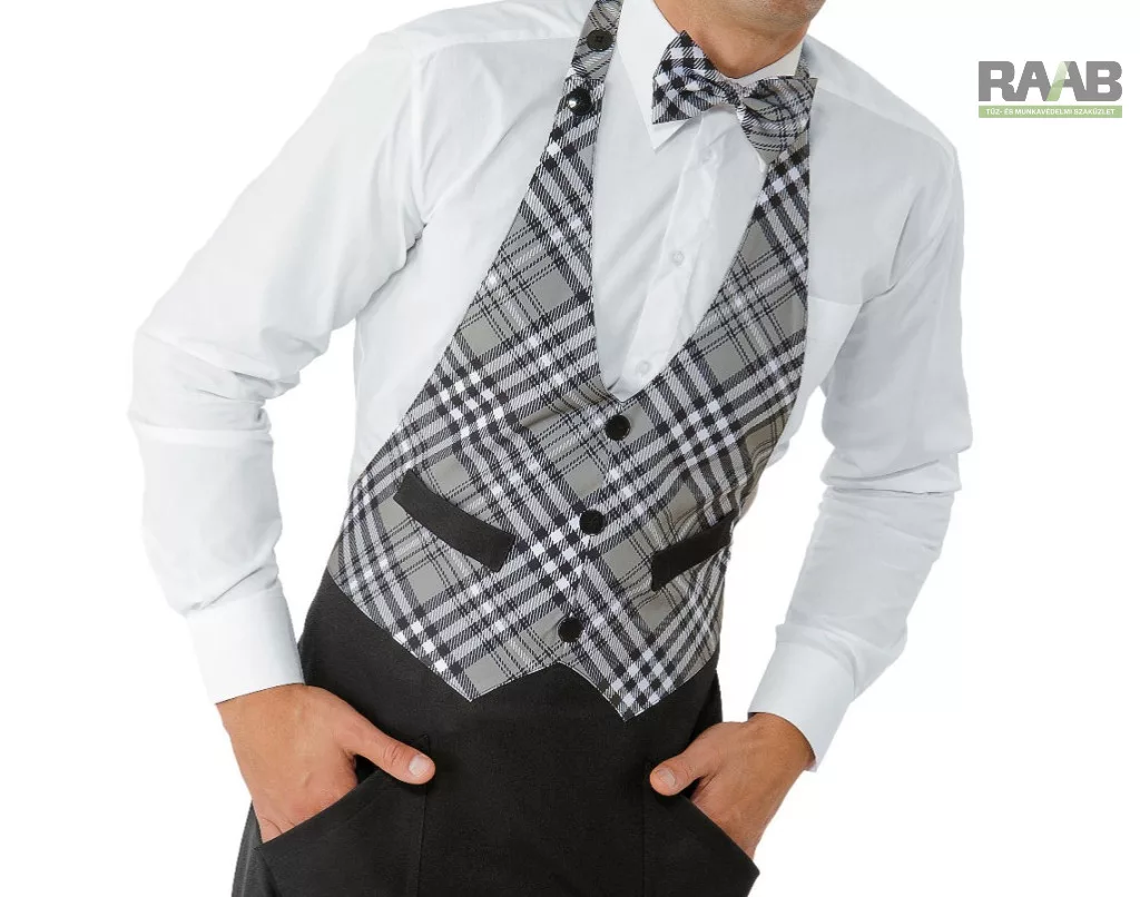 Fekete Garcon kötény, szürke skót kockás felsőrésszel