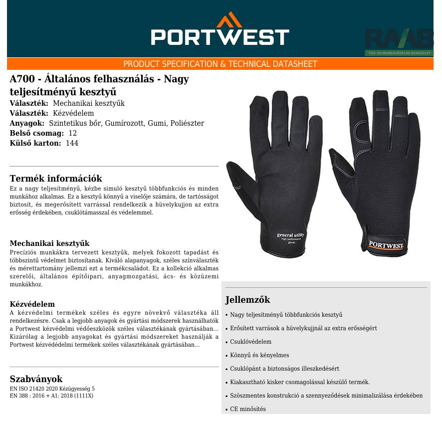 Ez a nagy teljesítményű, kézbe simuló kesztyű többfunkciós és minden munkához alkalmas.