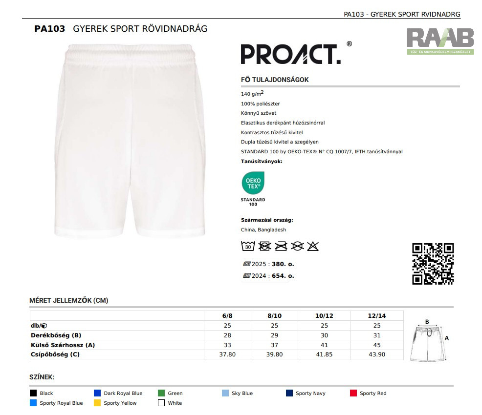 STANDARD 100 by OEKO-TEX® N° CQ 1007/7, IFTH tanúsítvánnyal