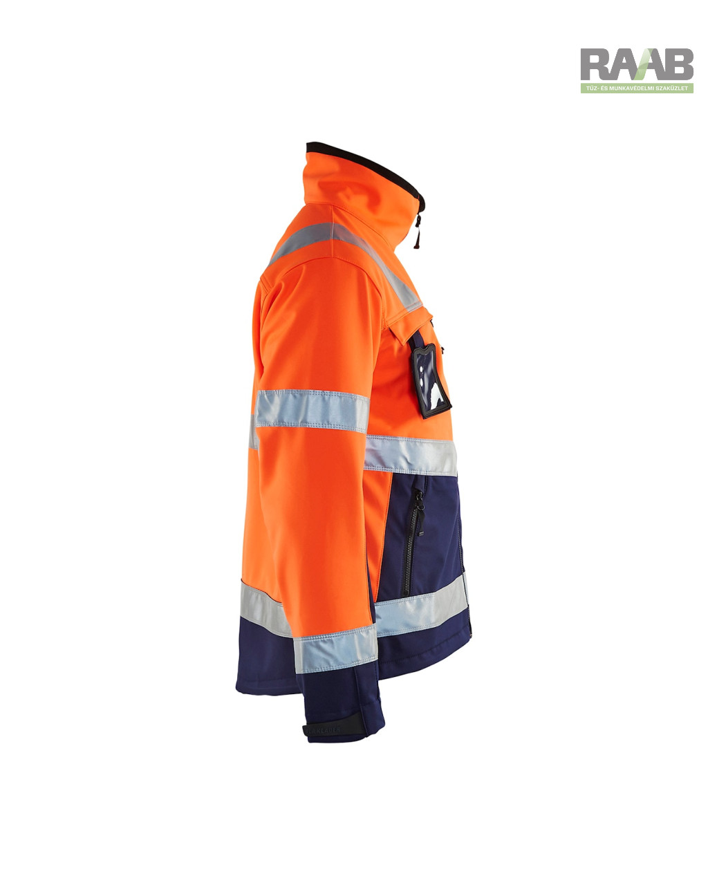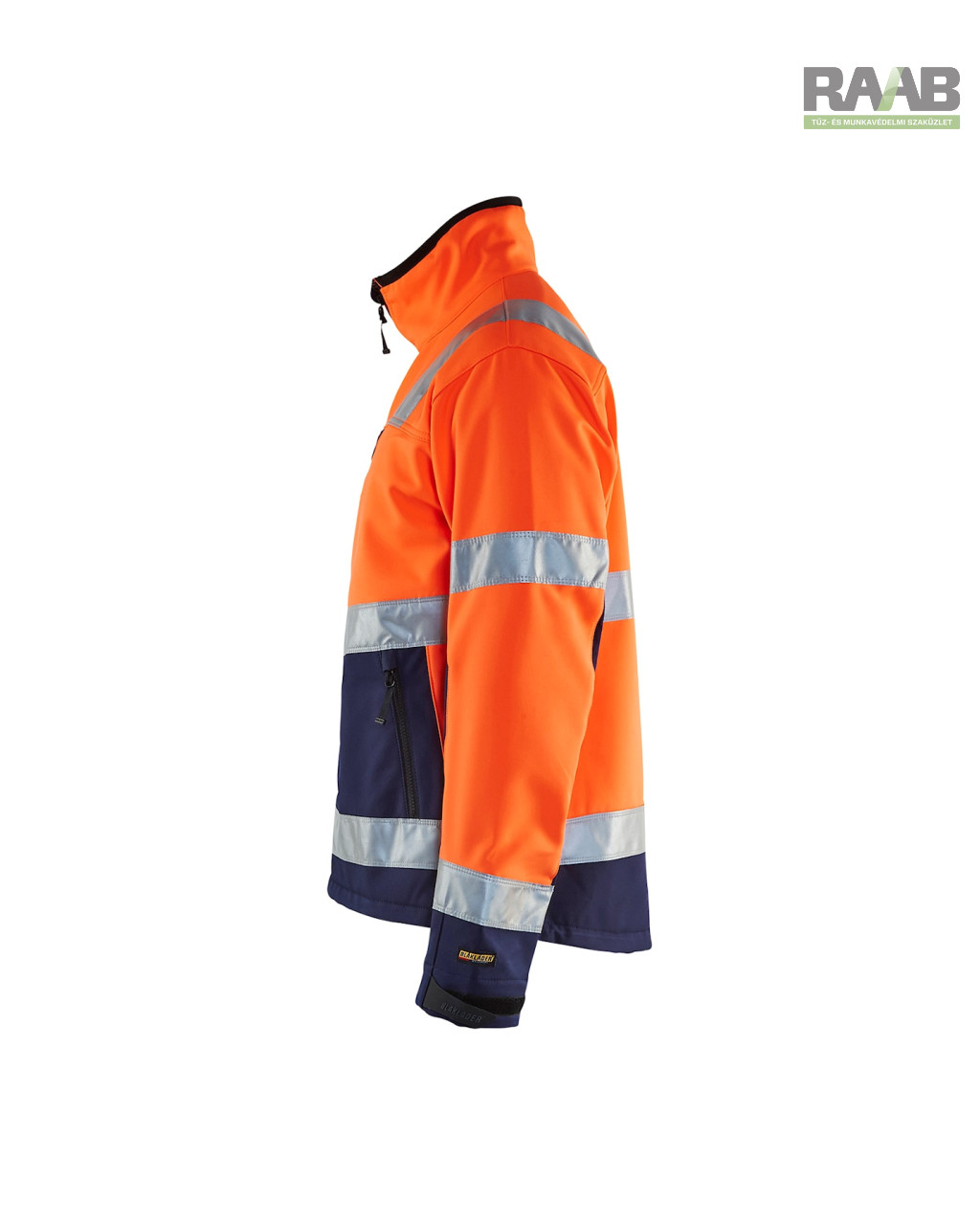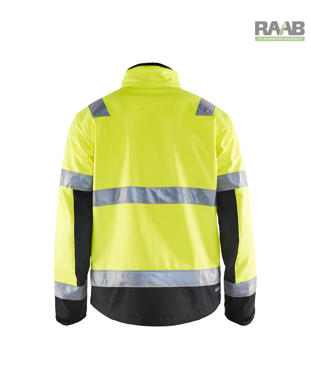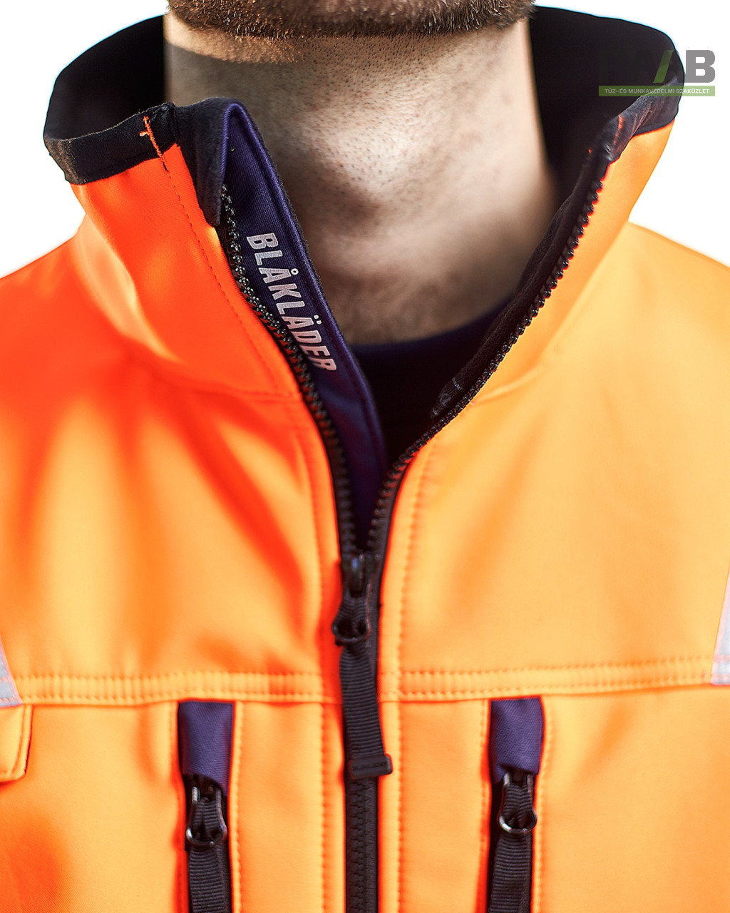 3-rétegű softshell dzseki – légáteresztő, vízlepergető, előre hajlított ujjak, hosszított hátrész, széles reflektorok, kétirányú cipzár: