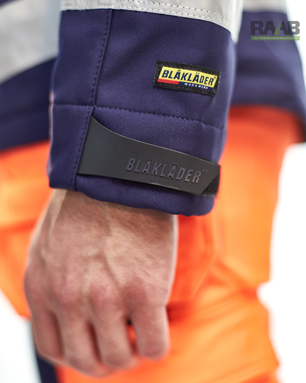 A 50 mm széles reflektor szalagok a testen, vállakon és ujjakon fokozzák a láthatóságot.