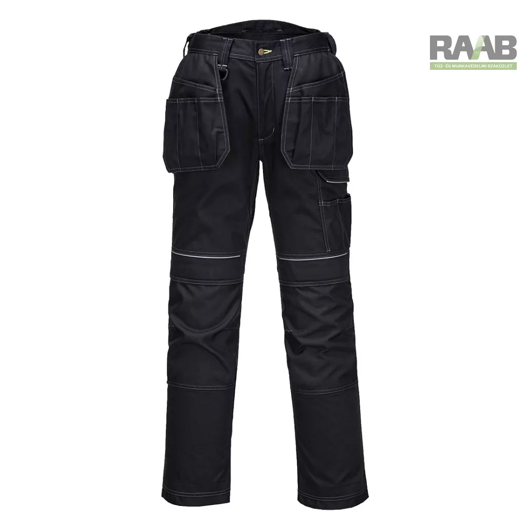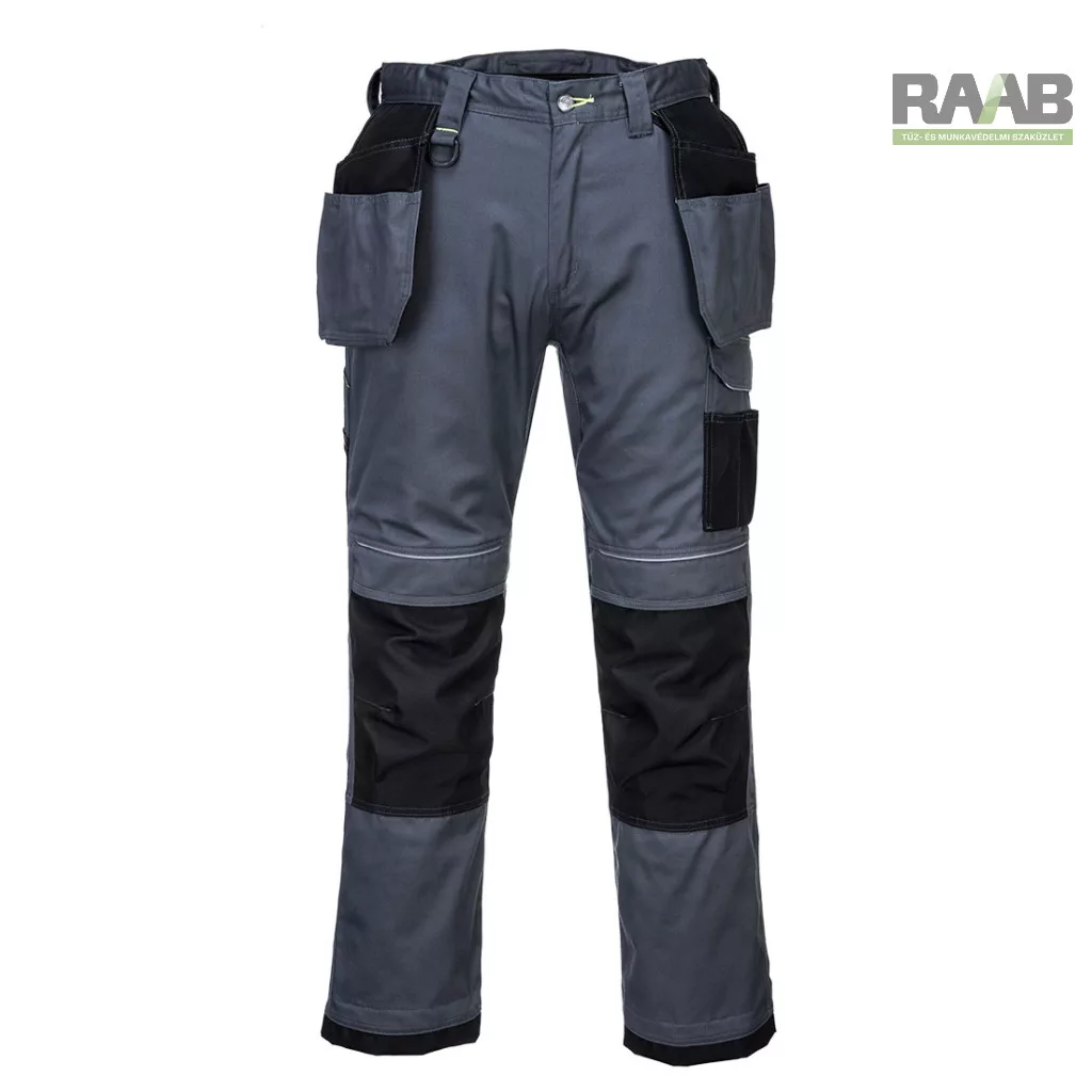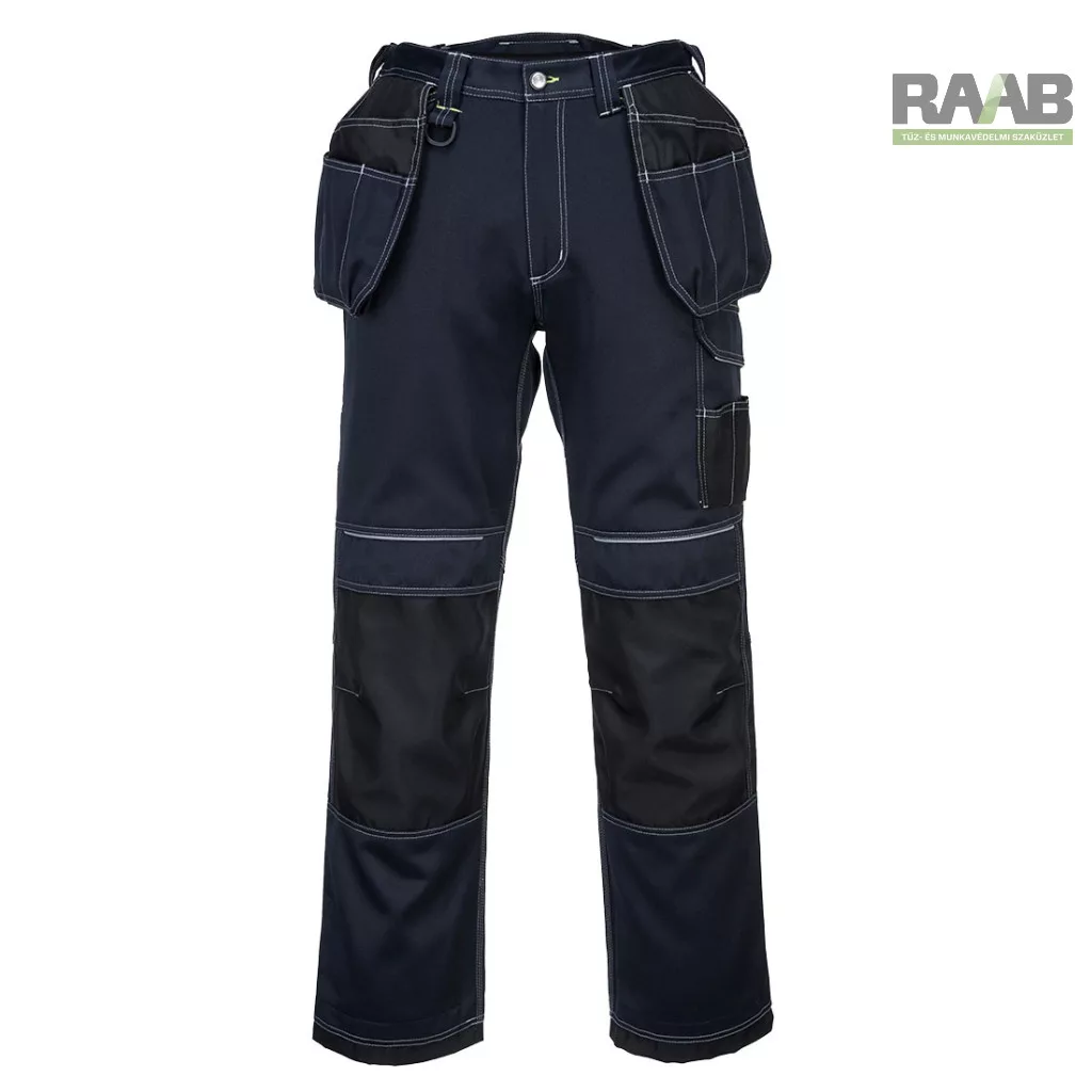 Számos kiváló funkció jellemzi: felső nyílású térdzsebek, háromszoros varrások, zseb megerősítések.