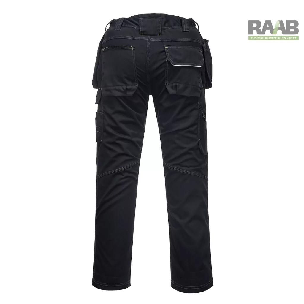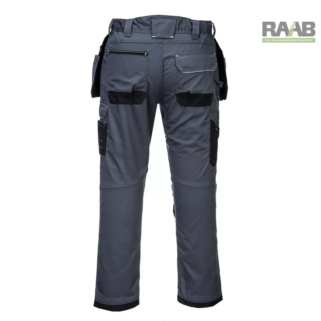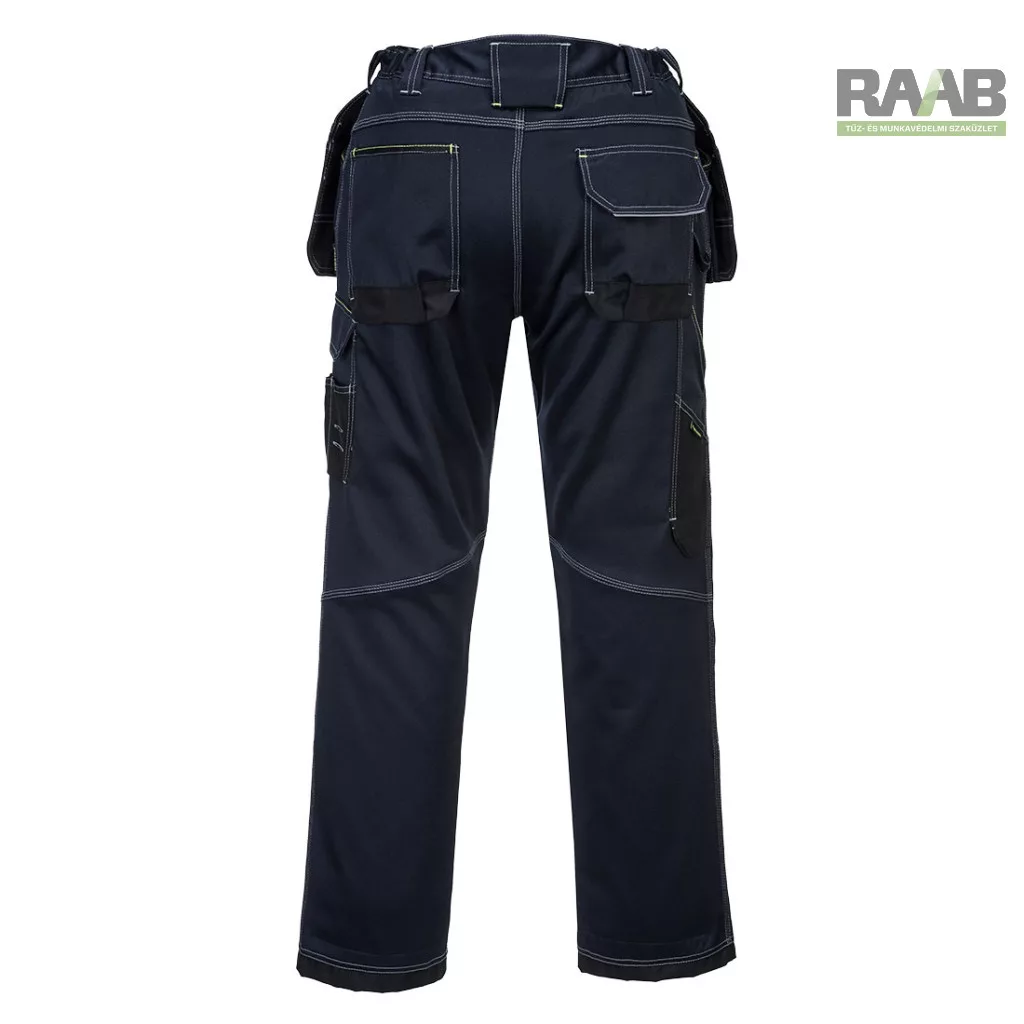 Számos kiváló funkció jellemzi: felső nyílású térdzsebek, háromszoros varrások, zseb megerősítések.