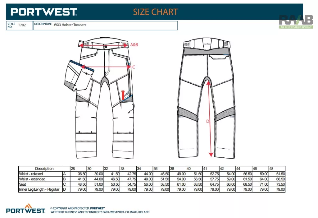 Modern munka nadrág okos zsebekkel ellátva a maximális tárolásért és biztonságért.
