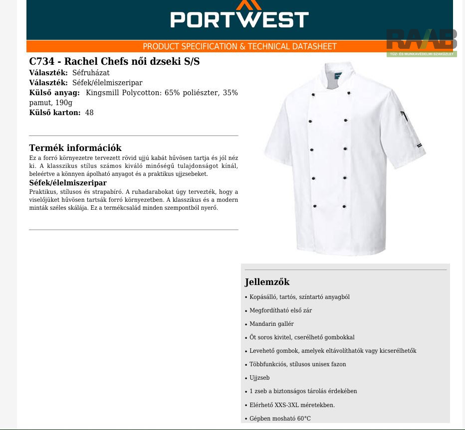 beleértve a könnyen ápolható anyagot és a praktikus ujjzsebeket.