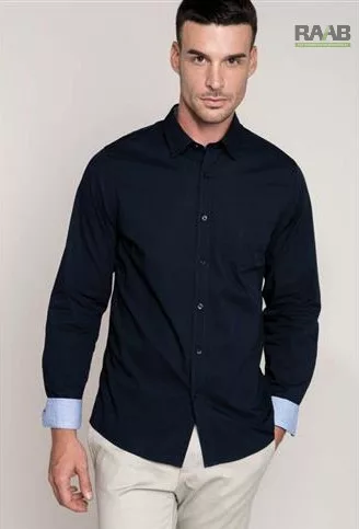 L-es, sötétszürke Férfi Ing kontraszt színű felhajtóval