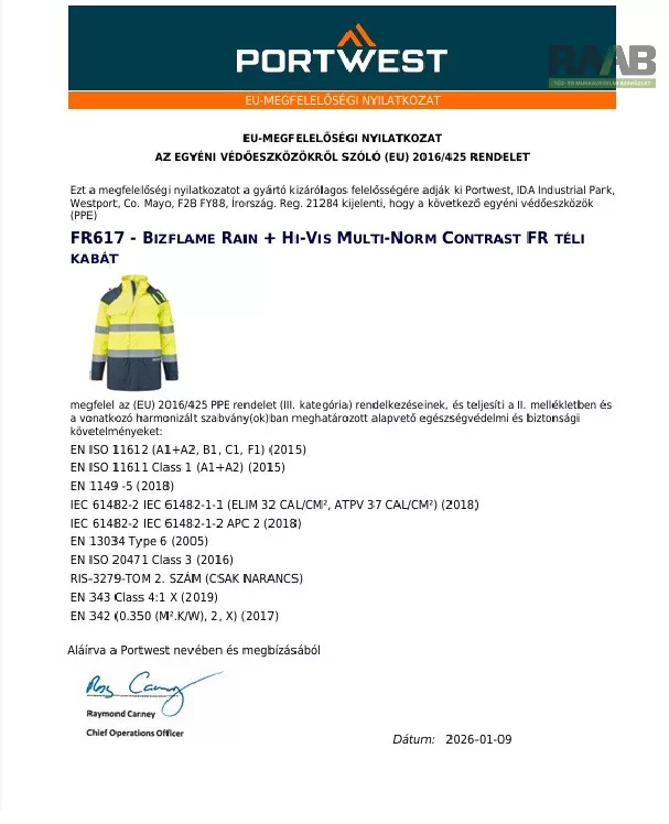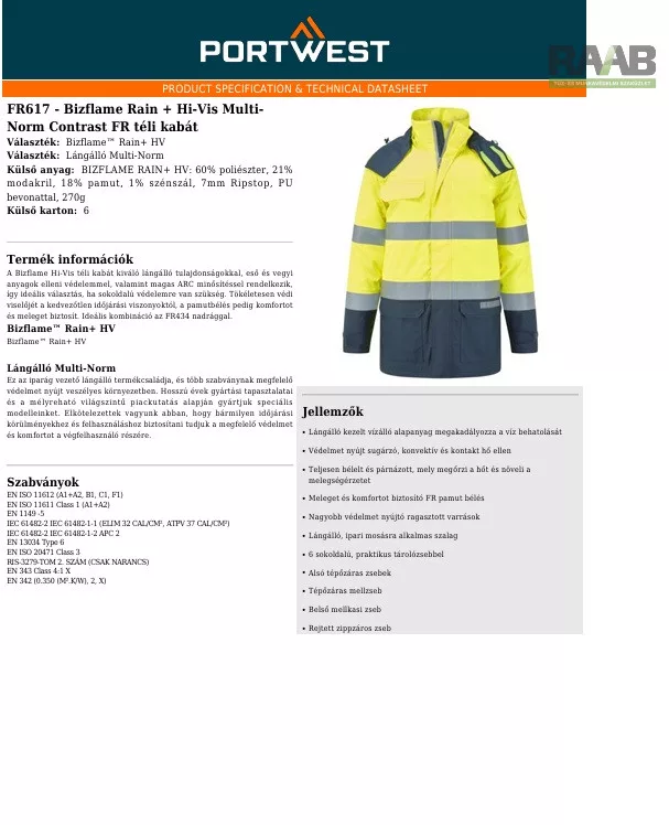 A Bizflame Hi-Vis téli kabát kiváló lángálló tulajdonságokkal,