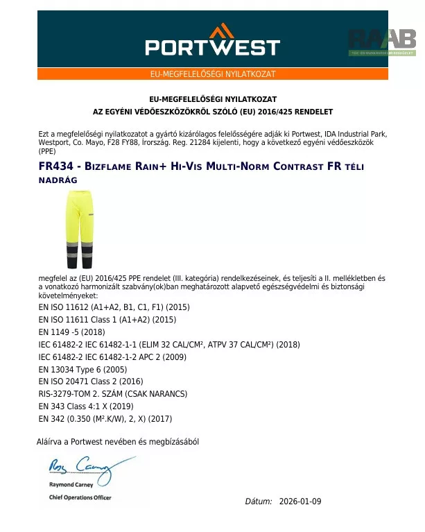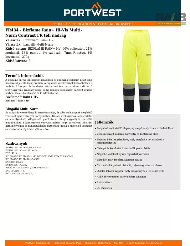 A Bizflame Hi-Vis téli nadrág kényelmes
