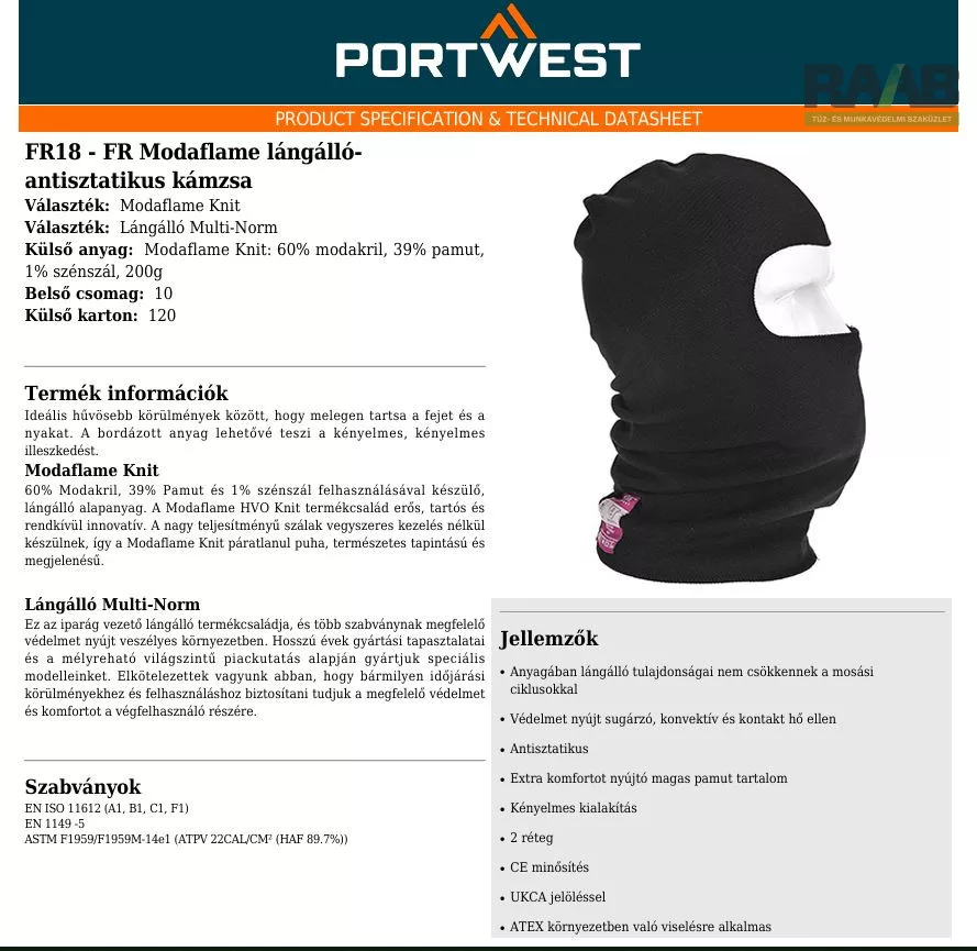 Külső alapanyag : Modaflame Knit: 60% modakril, 39% pamut, 1% szénszál 200g