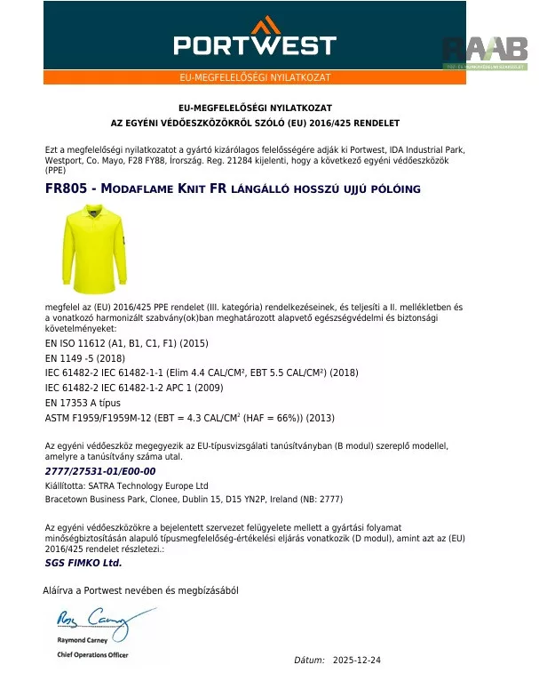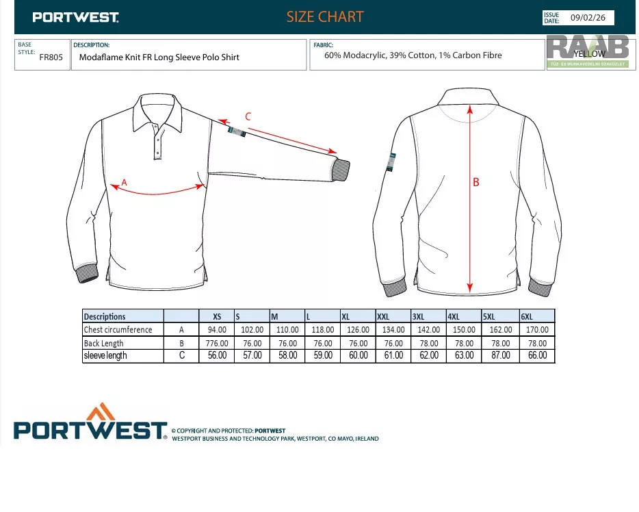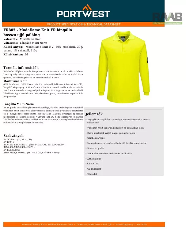 Modaflame Knit FR lángálló hosszú ujjú pólóing- sárga