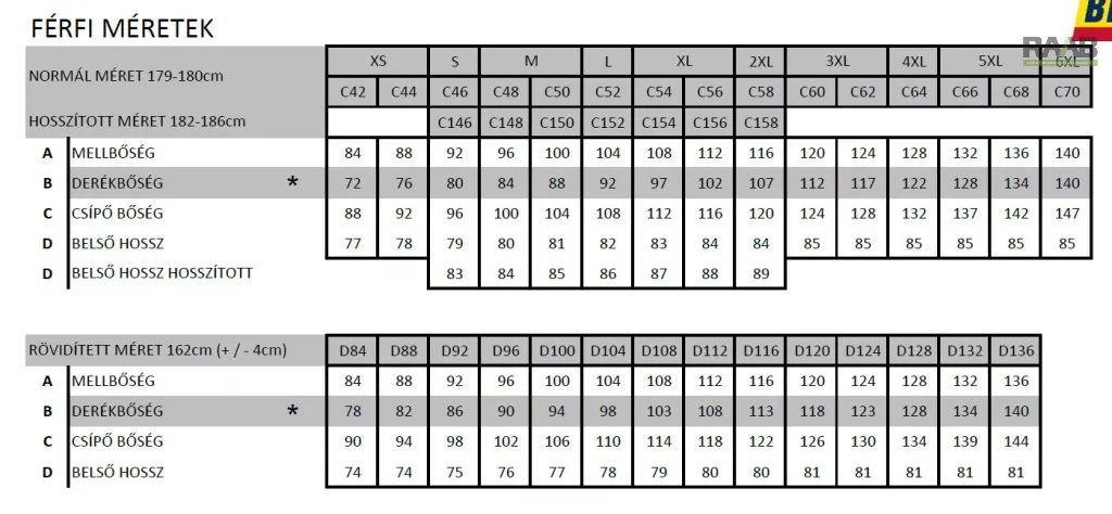 - EN 13034 PB [6] – vegyi fröccsenés elleni védelem (max. 20 mosás).
