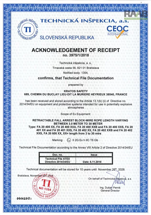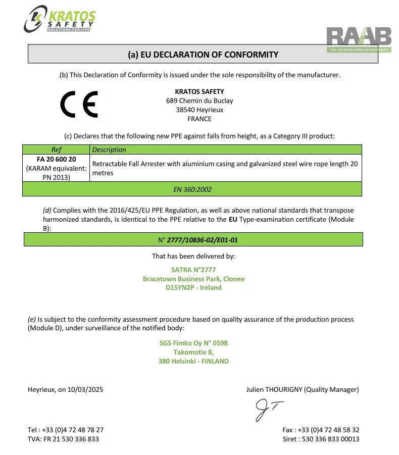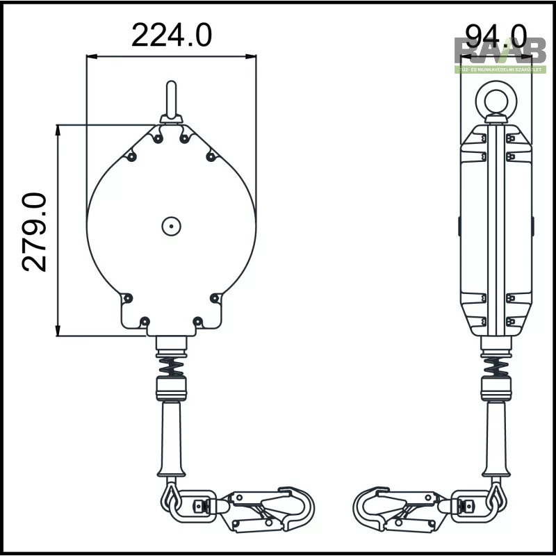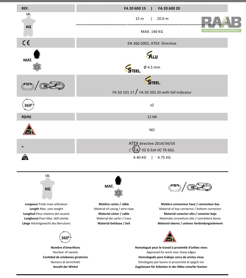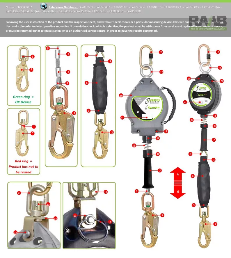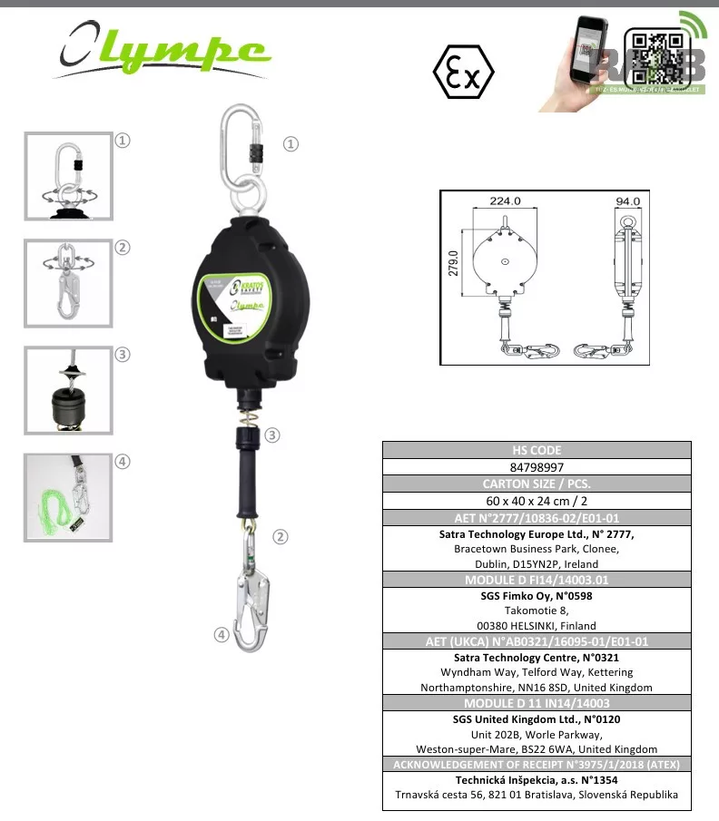 OLYMPE, Behúzható zuhanásgátló alumínium burkolattal és 20 méteres horganyzott acél drótkötéllel
