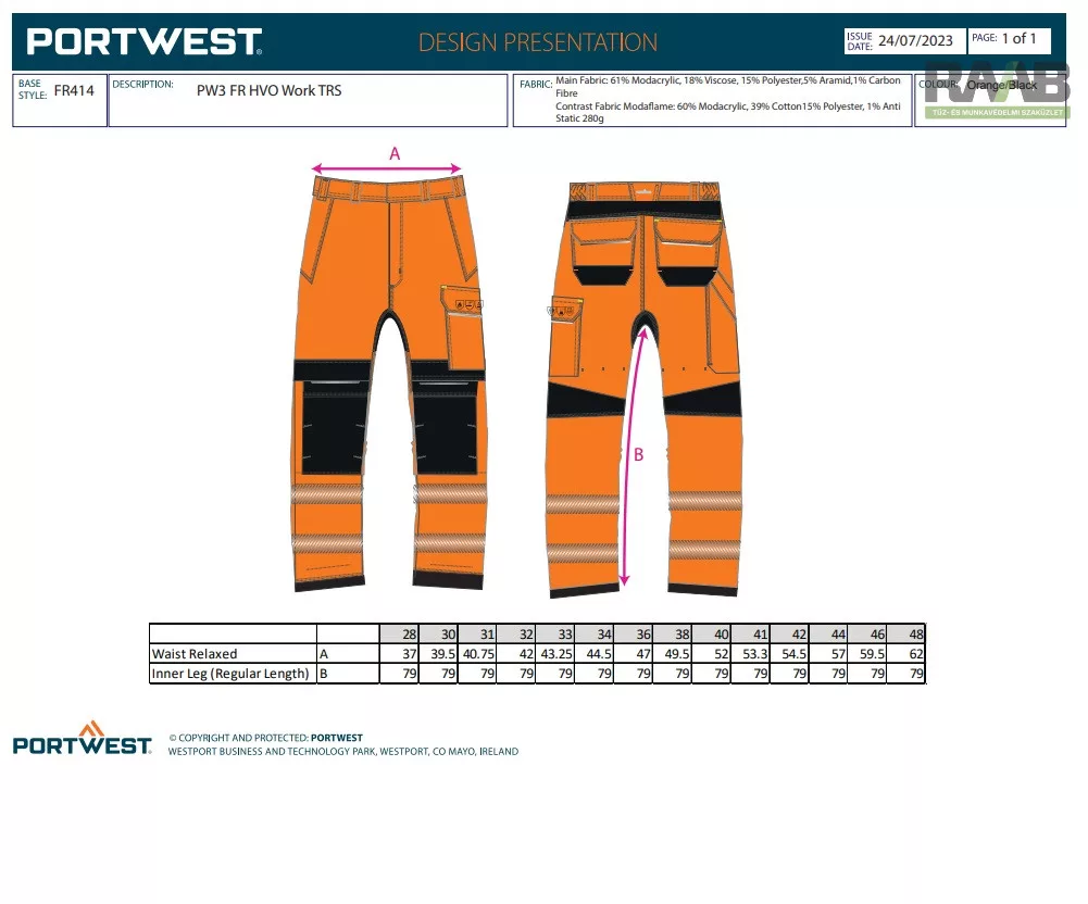 FR Hi-Vis Work nadrág tökéletes viselési kényelmet biztosít. Az FR megerősítő