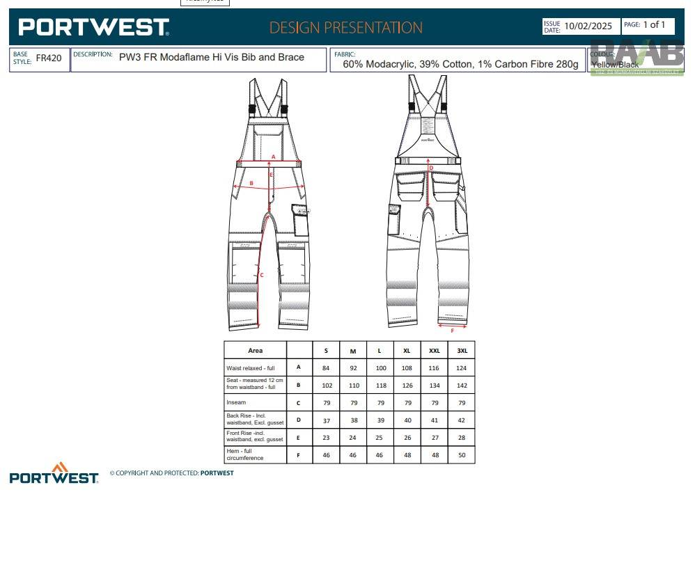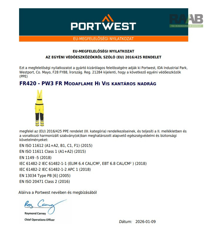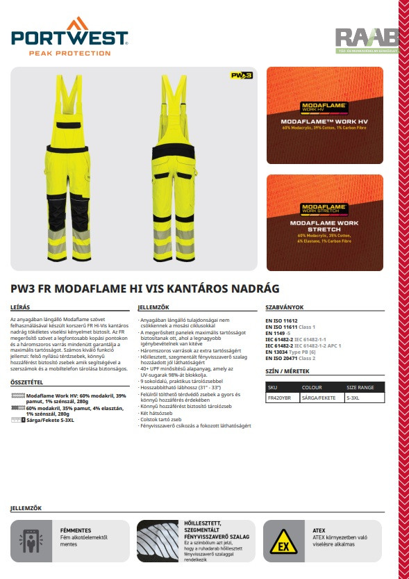 korszerű FR Hi-Vis kantáros nadrág tökéletes viselési kényelmet biztosít.