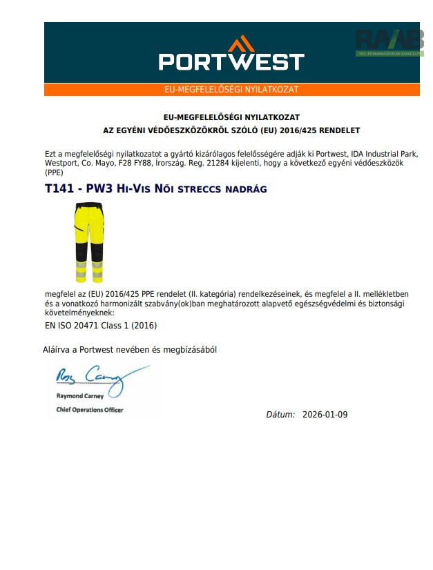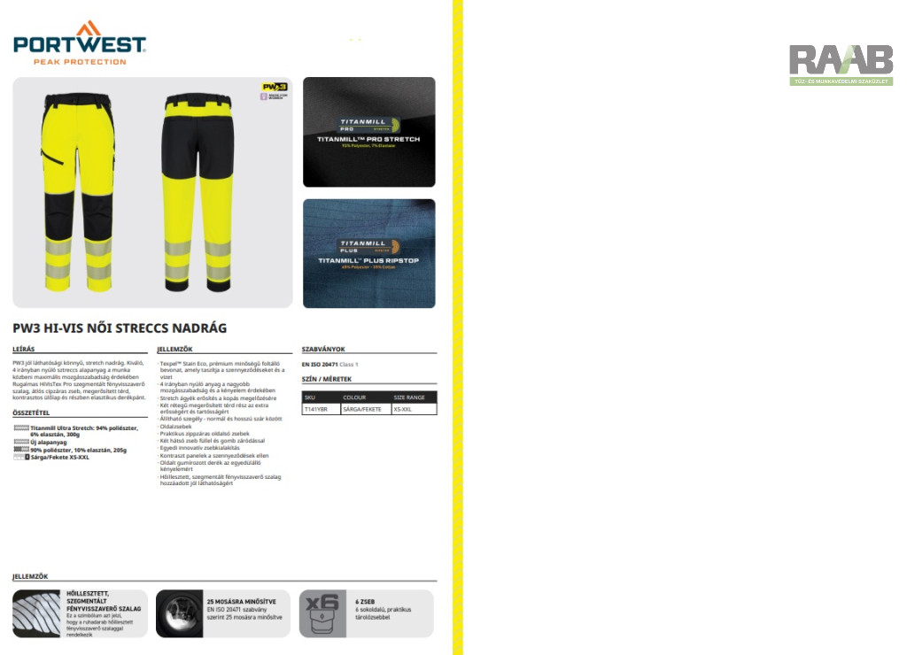 PW3 jól láthatósági könnyű, stretch nadrág.