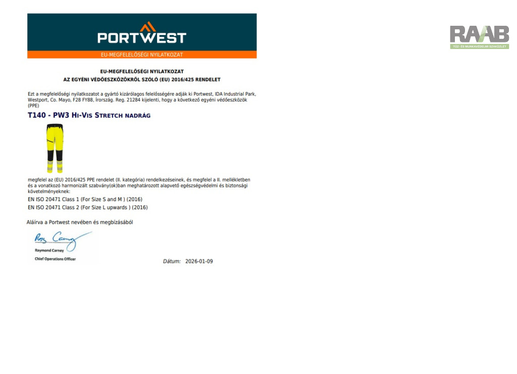 EN ISO 20471 szabvány szerint 50 mosásra minősítve