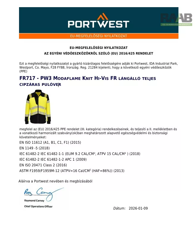 A PW3 Modaflame Knit Hi-Vis FR cipzáras pulóver ideális