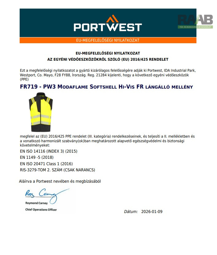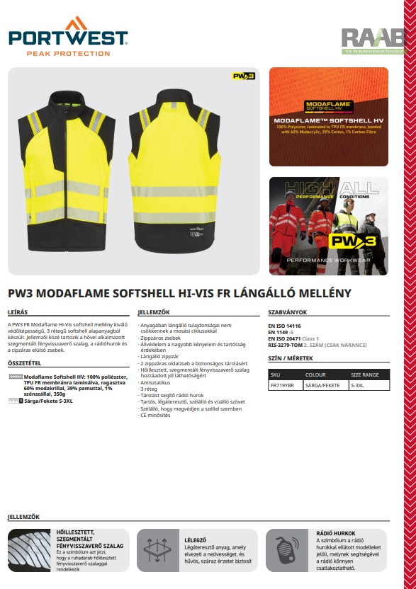 A PW3 FR Modaflame Hi-Vis softshell mellény kiváló védőképességű,