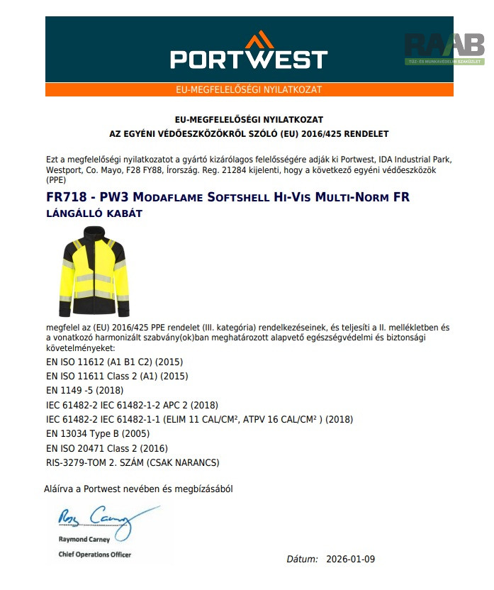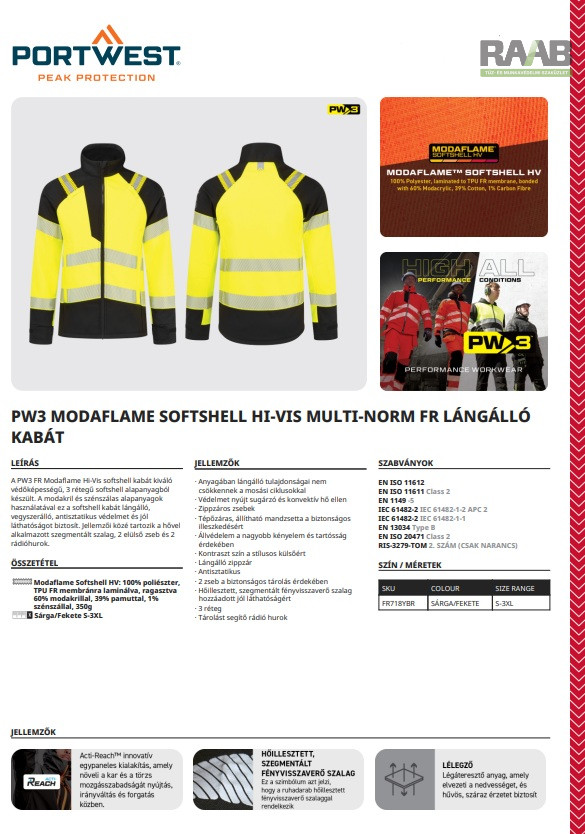 A PW3 FR Modaflame Hi-Vis softshell kabát kiváló védőképességű,
