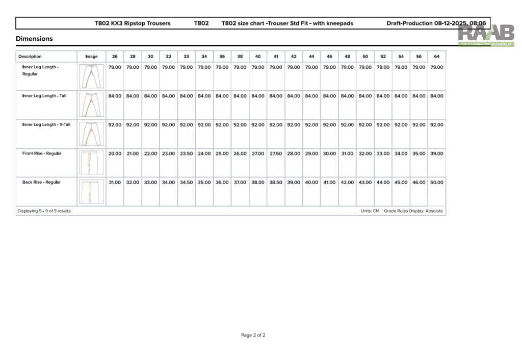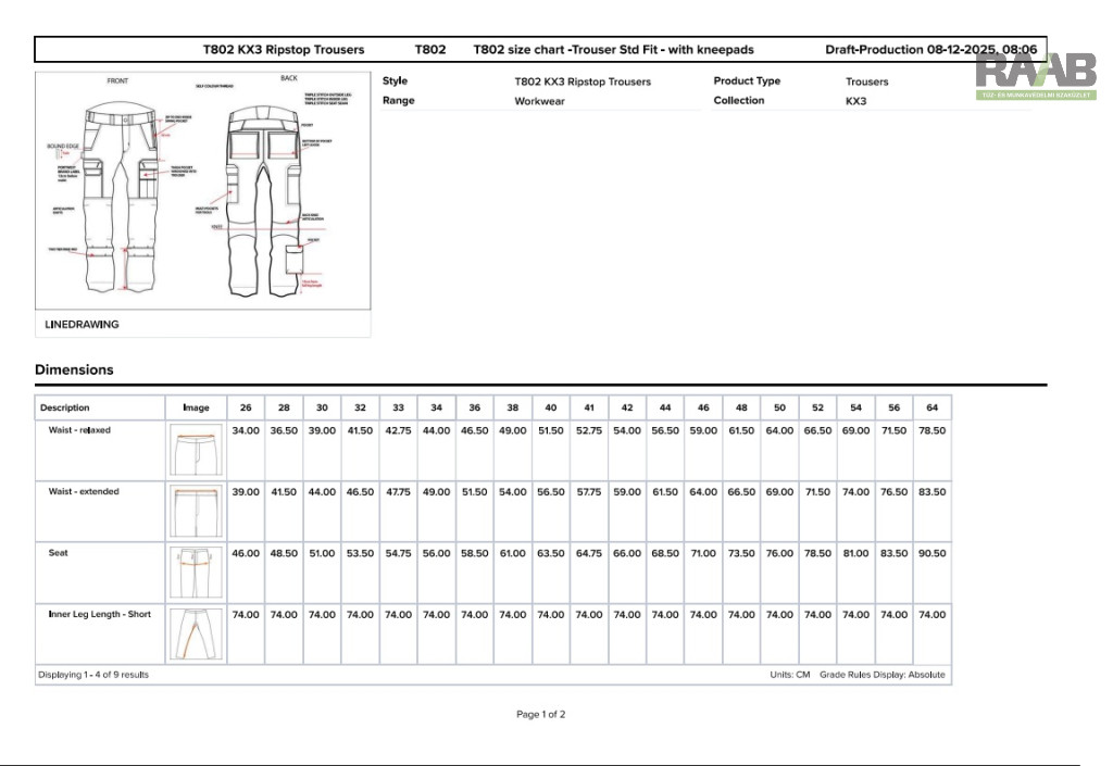 térdvédő zsebek és állítható szárhossz kialakítás a kényelem érdekében.