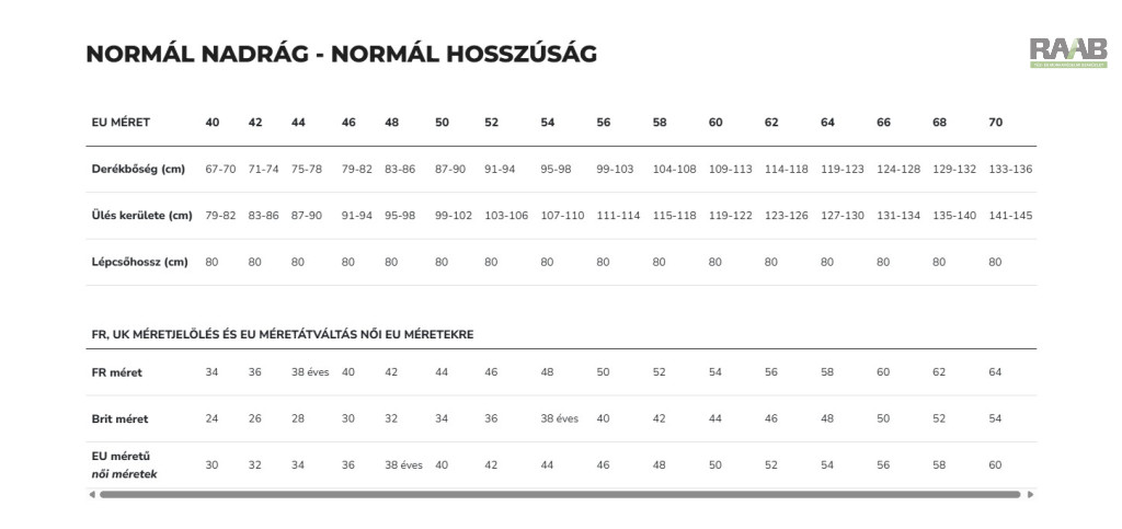 Méretek: 46 - 64