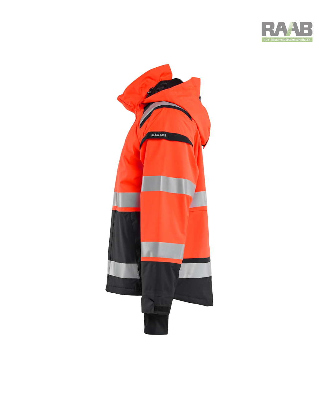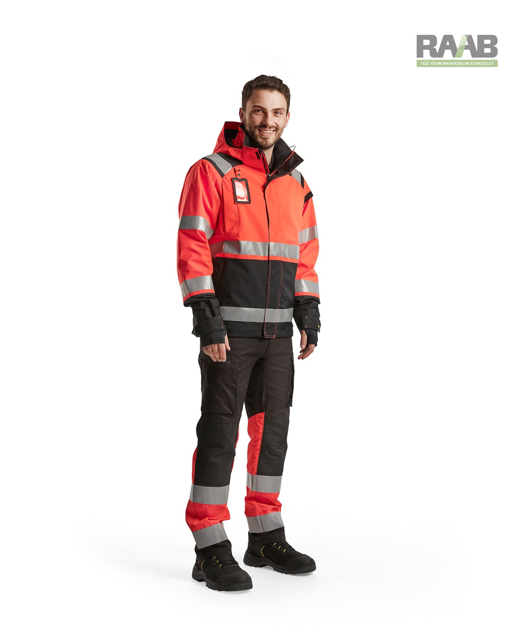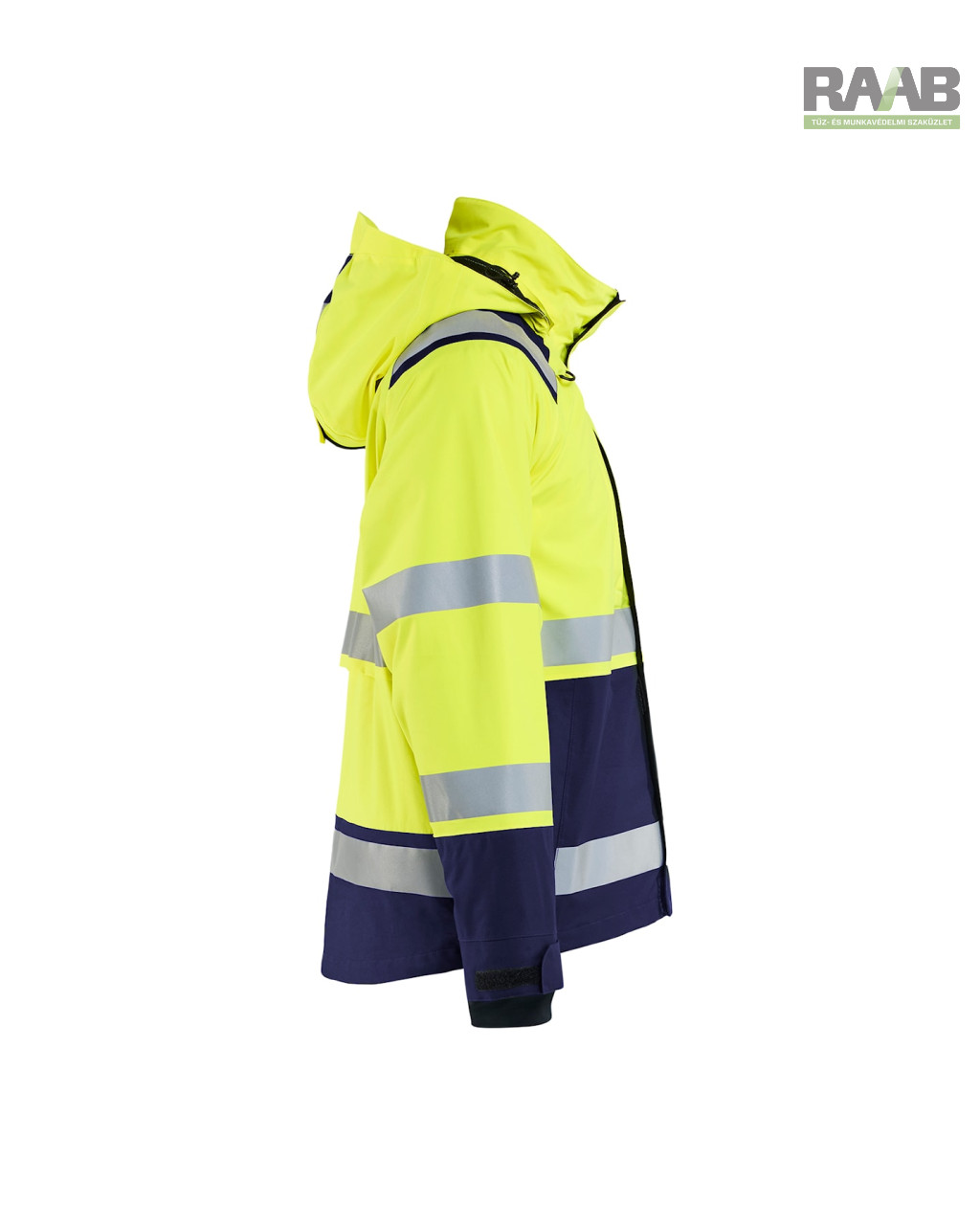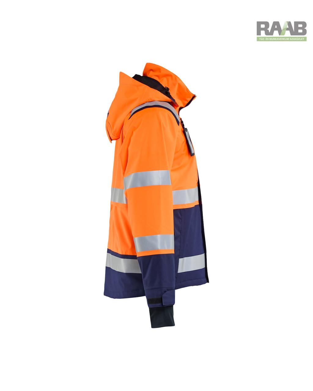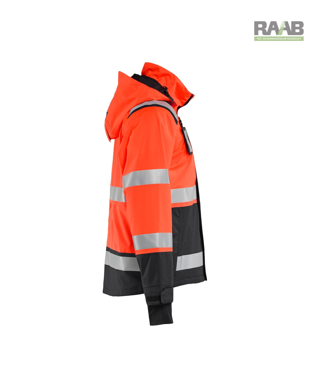 - Fényvisszaverő csíkok (50 mm) a testen, ujjakon és vállakon.