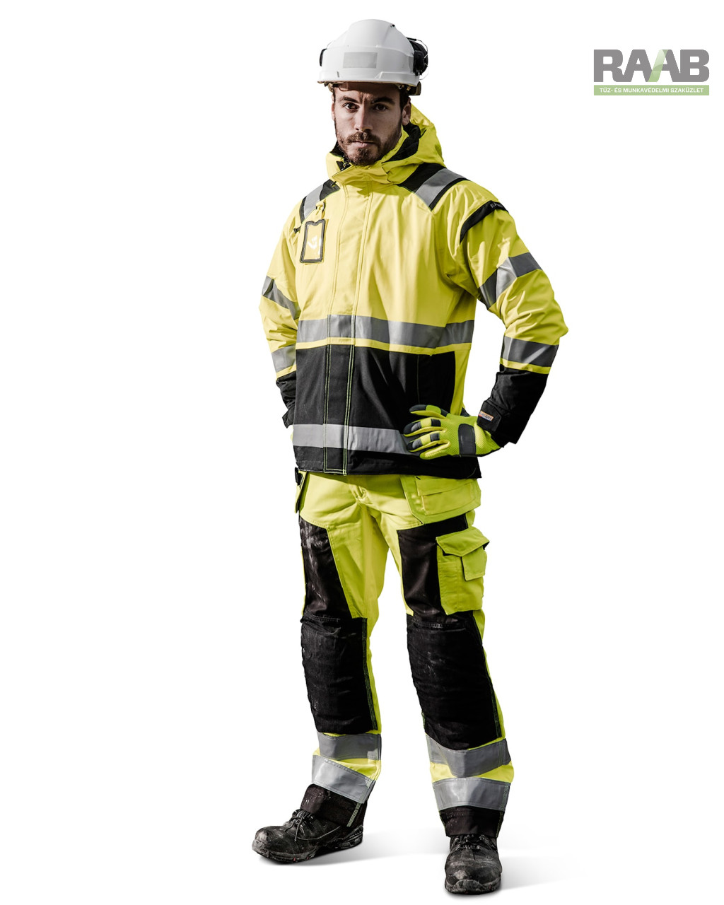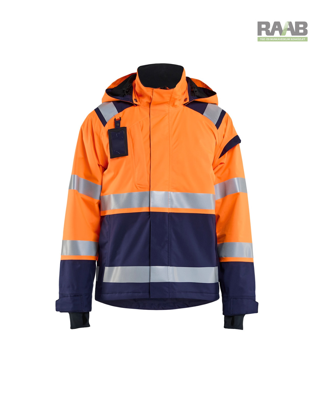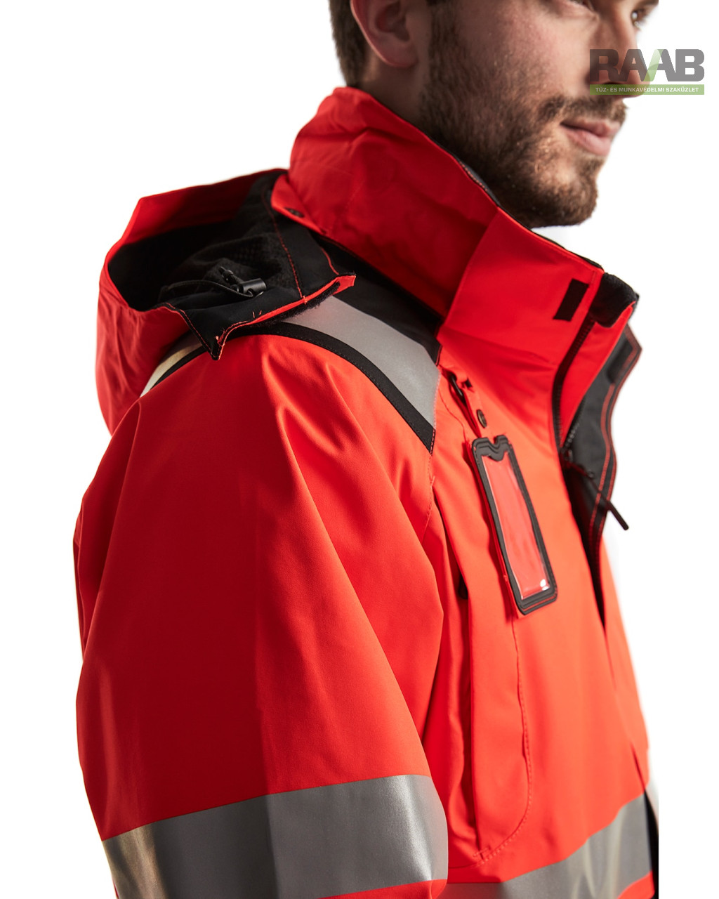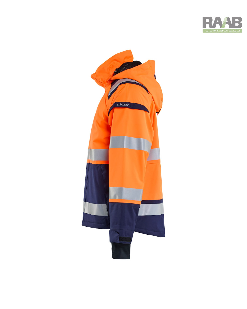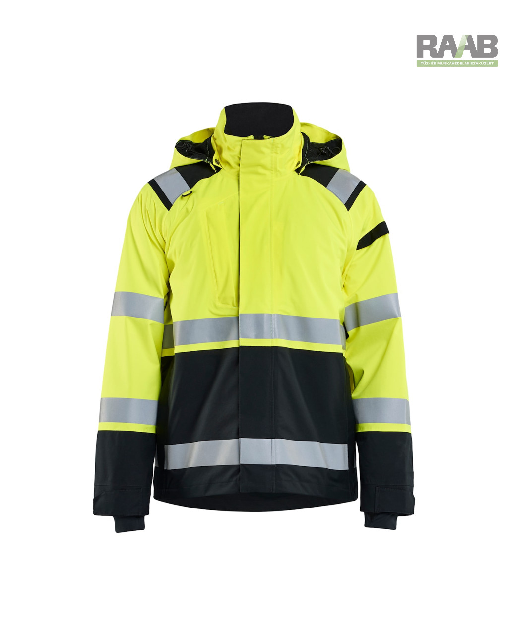 - Fényvisszaverő csíkok (50 mm) a testen, ujjakon és vállakon.