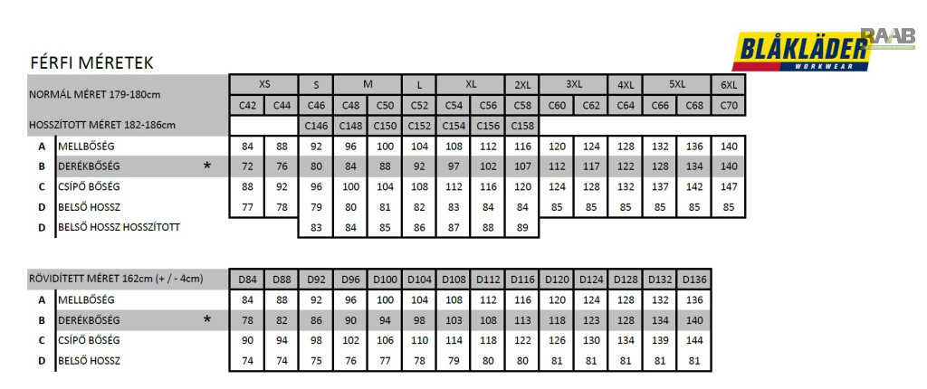 - EN ISO 20471 – láthatósági szabvány: XS–S méretben 2. osztály, M-től felfelé 3. osztály; kombinált tanúsítás C → M.