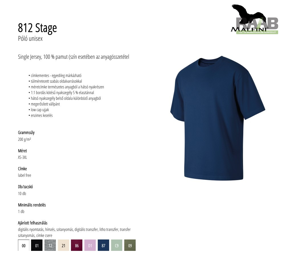 (szín esetében az anyagösszetétel eltérő lehet - 12 – 85 % pamut és 15 % viszkóz)