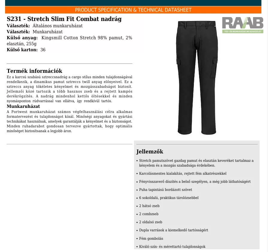 sztreccs twill anyag előnyeivel. Ez a sztreccs anyag tökéletes kényelmet és mozgásszabadságot biztosít.