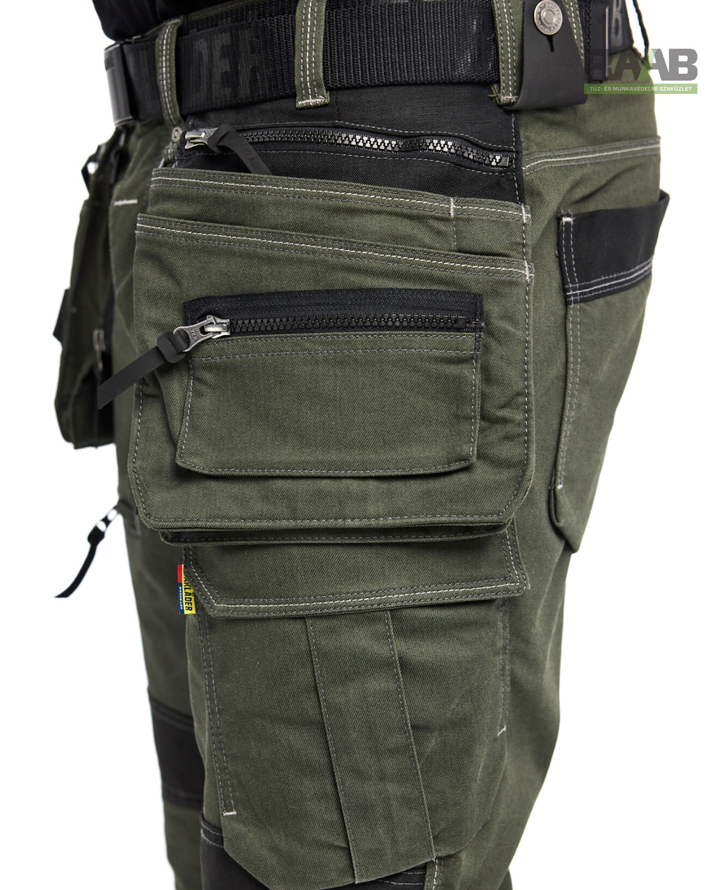 CORDURA® 1000 erősítés a szerszám, hát és vonalzózsebeknél, CORDURA® stretch térdzsebek.