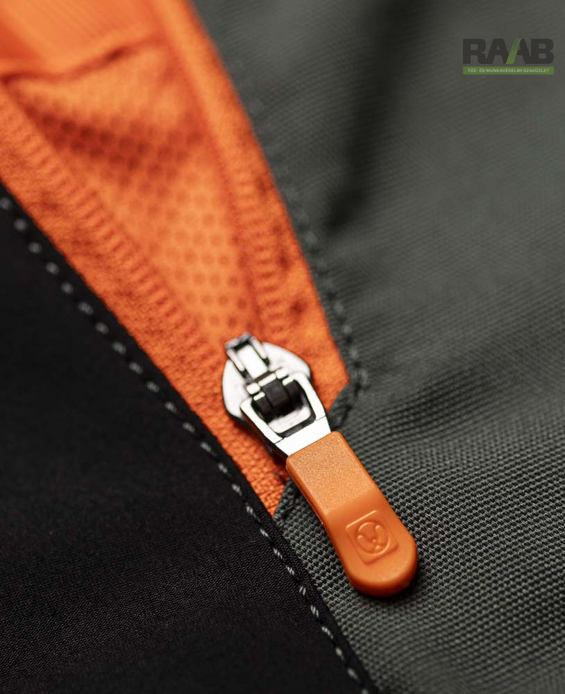 az oldalsó, hálóval ellátott szellőzőcipzárak pedig segítik a hő elvezetését.