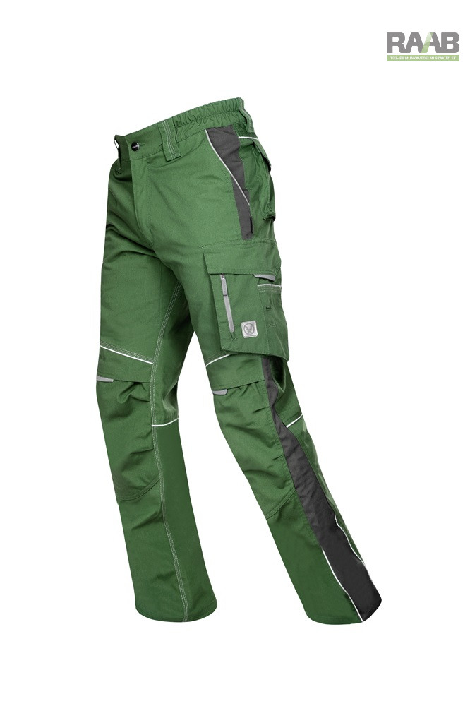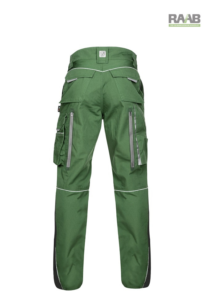 Dupla anyag térdrészen, térdzseb jól láthatósági csíkok elöl és hátul.