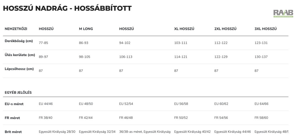 Testmagasság: 183-190 cm