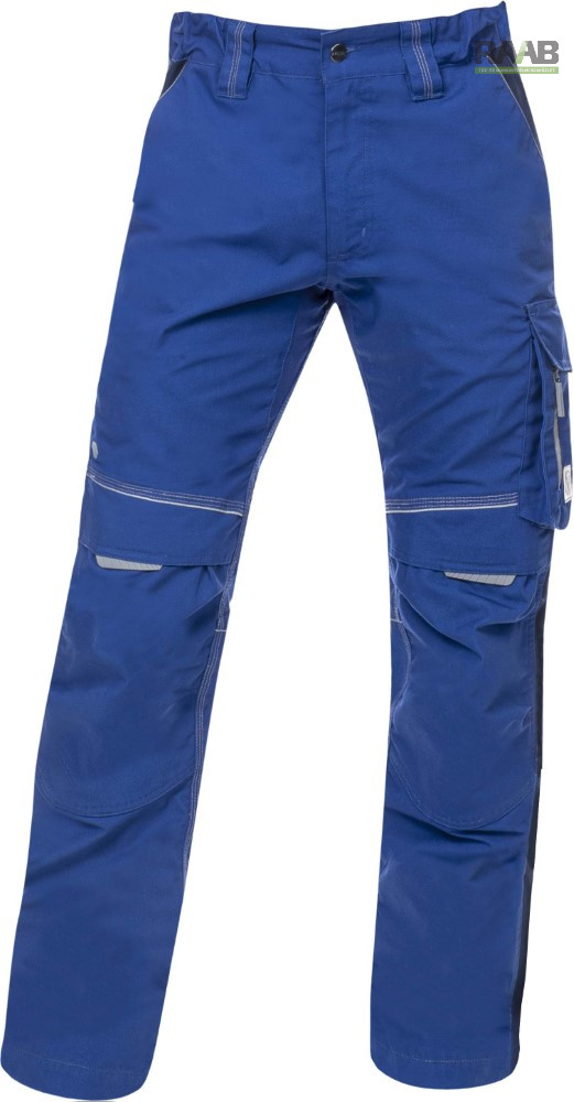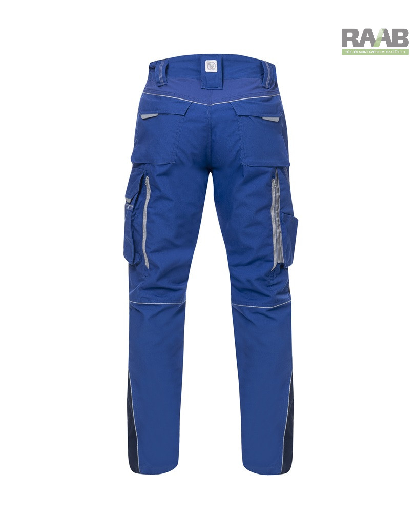Dupla anyag térdrészen, térdzseb jól láthatósági csíkok elöl és hátul.