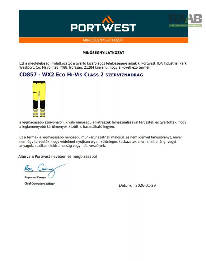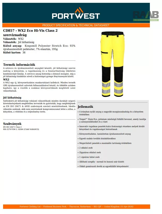 A sztreccs és újrahasznosított anyagból készült, jól láthatósági szerviz nadrág a kényelem,