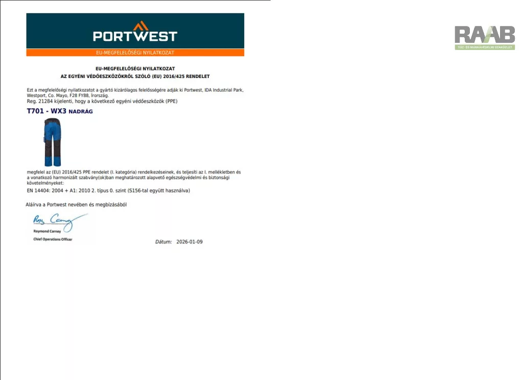 EN 14404:2004+A1:2010 2. típus 0. szint (S156-tal együtt használva)